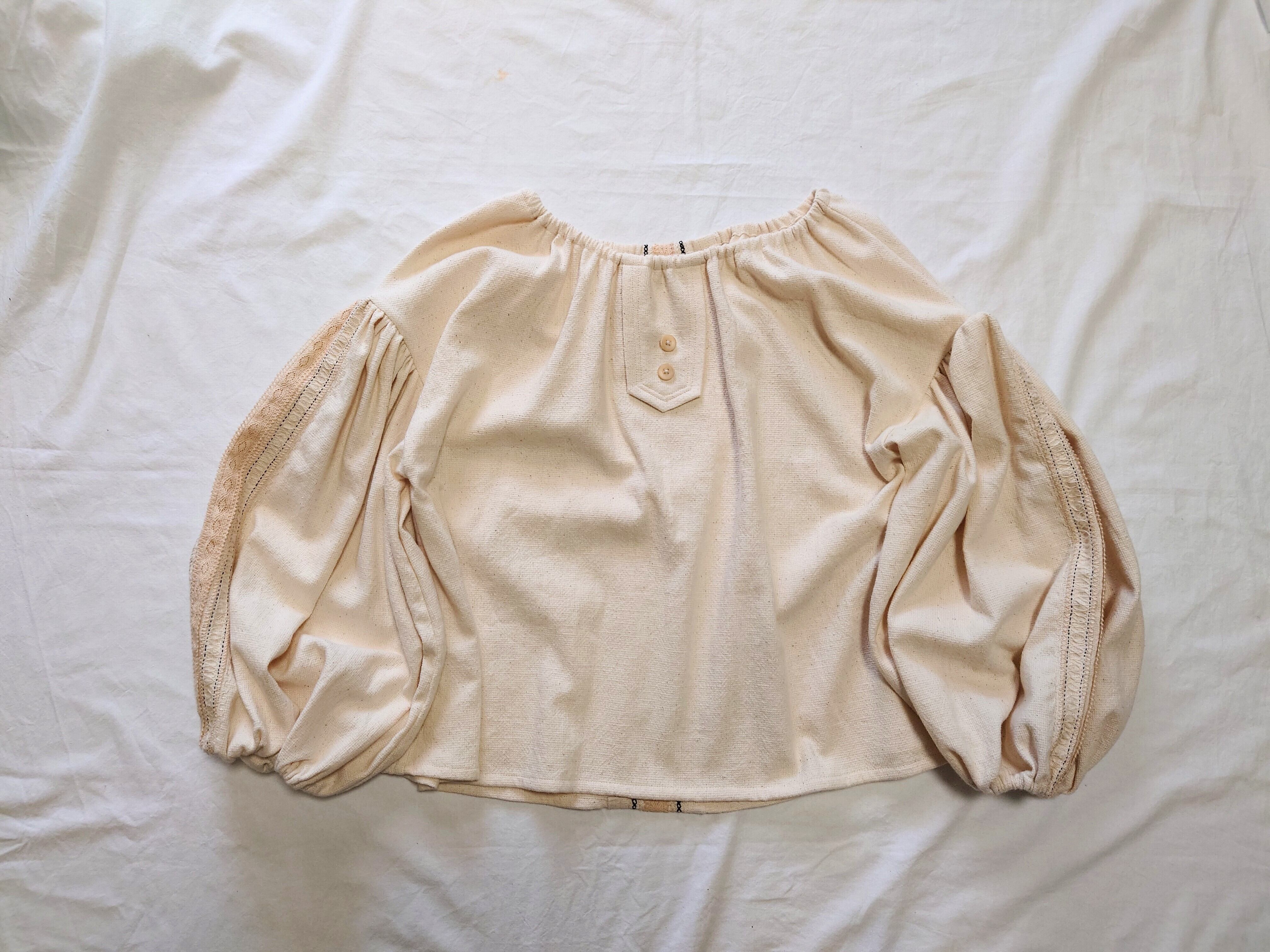 スモックブラウス 生成り×刺繍